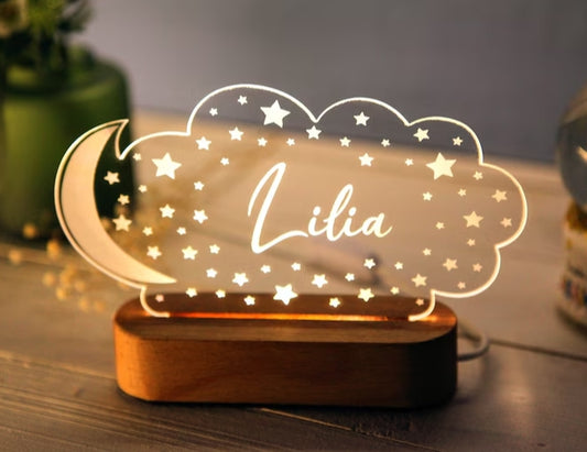 Personalisiertes Kinder-Nachtlicht, individuelles Namensgeschenk mit Mond und Sternen – Babyzimmer-Dekoration