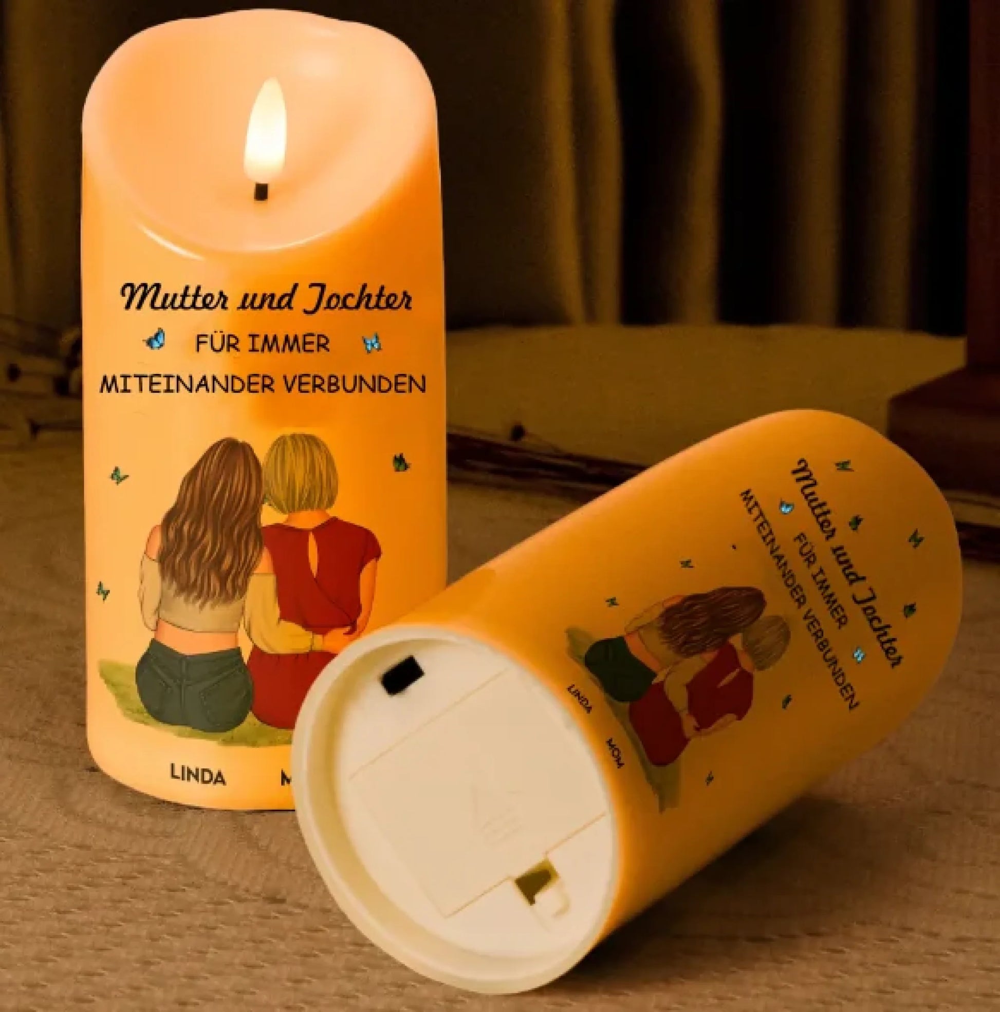 Mutter und Tochter für immer miteinander verbunden - personalisierte LED-Kerze