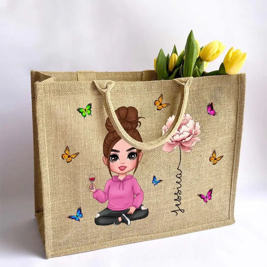 Personalisierte Einkaufstasche aus Leinen und Jute mit Geburtsblume für Mädchen