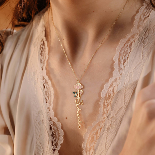Personalisierte Geburt Blume Name Halskette