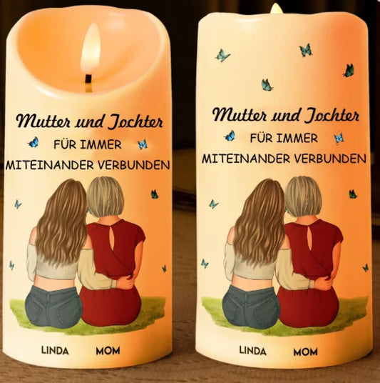 Mutter und Tochter für immer miteinander verbunden - personalisierte LED-Kerze