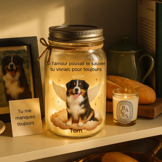 Mockup Lumière commémorative personnalisée - Placez le portrait de votre animal dans un pot lumineux pour vous accompagner pour toujours