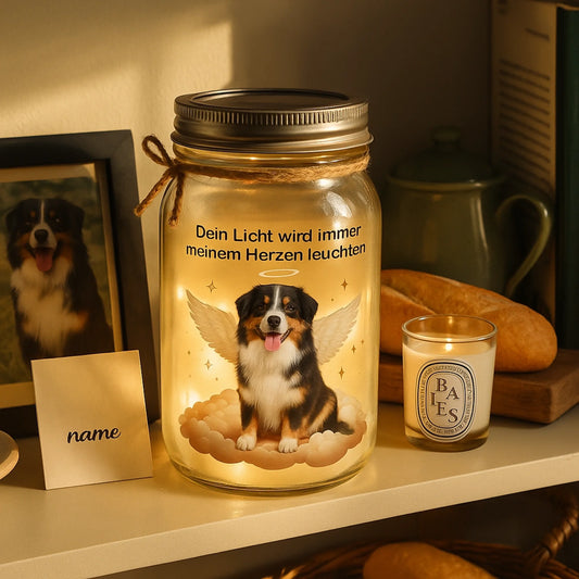 Personalisierte Andenkenflasche – mit dem Porträt Ihres Haustiers in beleuchtetem Glas eingraviert